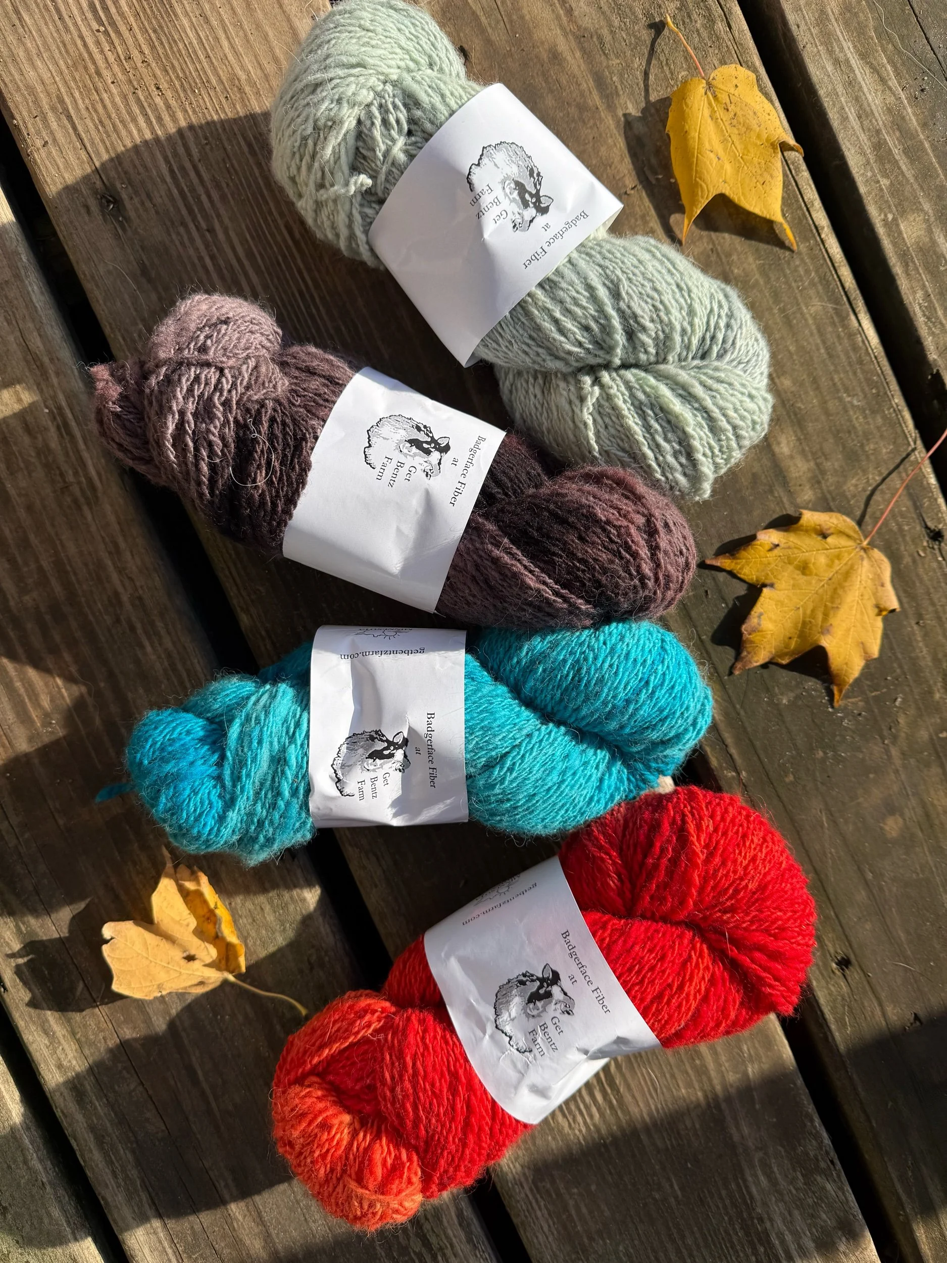 This delightful 2 ply DK/Worsted yarn is itching (not literally) to be your next sweater project. Sara from MUSE 2320 Fiber co dyed the batch, and if you are looking for a specific color or quantity that might not be here, make sure to check out her store or reach out. There are a few skeins there as well.