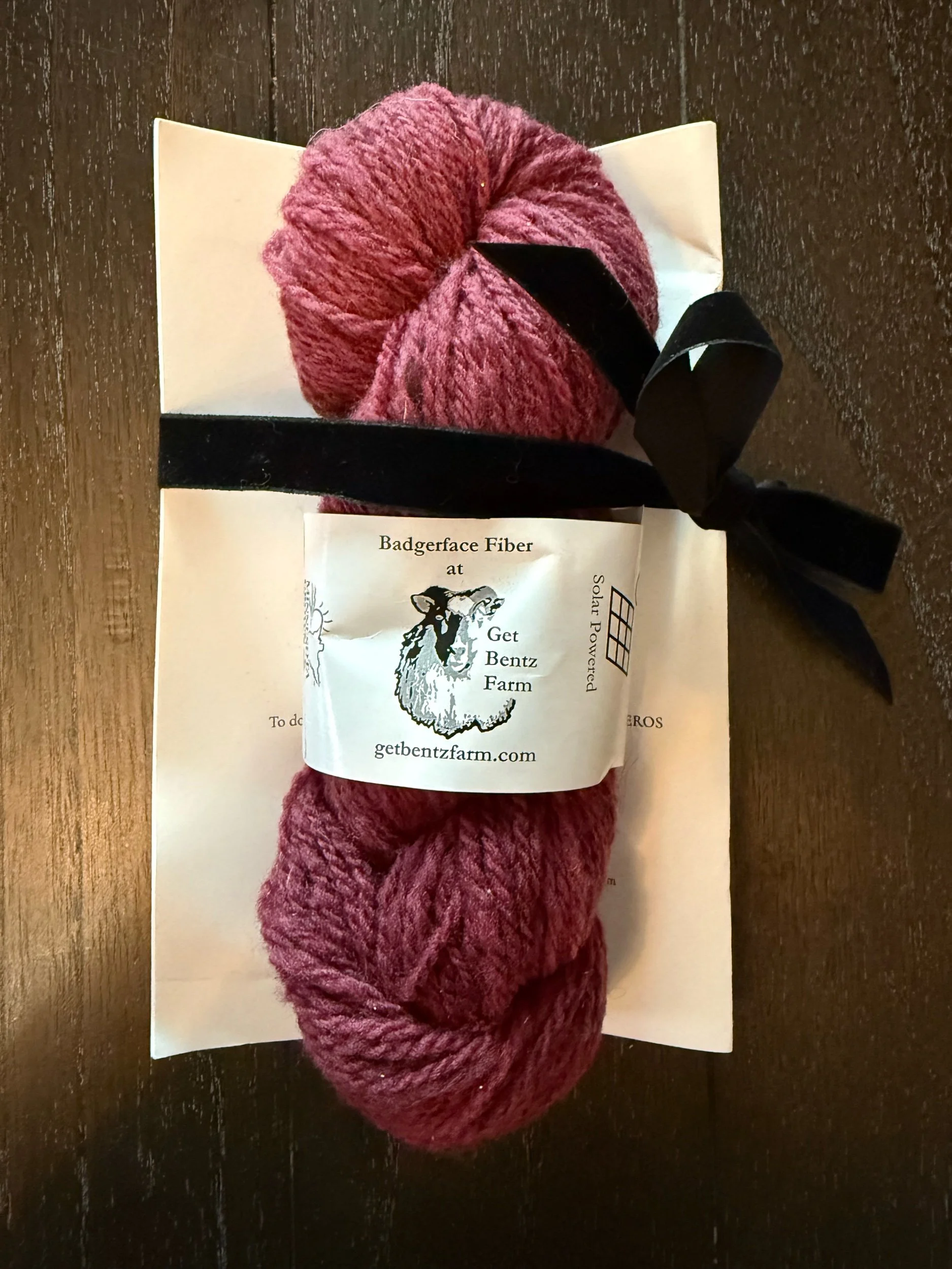 Give an extra special gift to yourself, or the special knitter in your life with this beautiful pattern and naturally dyed yarn. Colored snow is a delightful blend of fine wools, spun into a woolen 2 ply DK with a touch of sparkle and naturally dyed a beautiful red. The Rosette pattern is designed by local designer Cassie La Follette. The pattern is a top-down sweater that features beautiful Rosettes across the yolk. Pair the Colored Snow with the Snow yarn and you have everything you need to complete this pattern.
